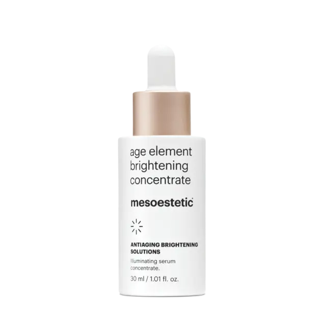 Mesoestetic Age Element Brightening Concentrate er et høykonsentrert serum utviklet for å redusere mørke flekker, forbedre hudens klarhet og gi en jevnere hudtone. Formuleringen jobber aktivt med å regulere melaninproduksjonen samtidig som den støtter hudens naturlige fornyelsesprosess.